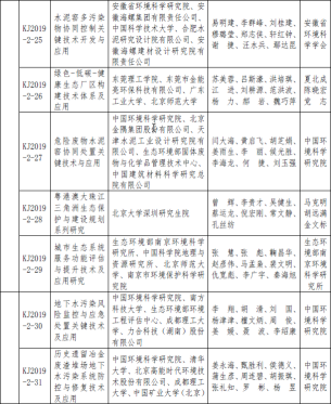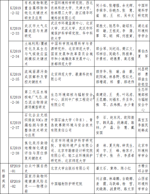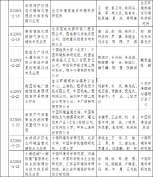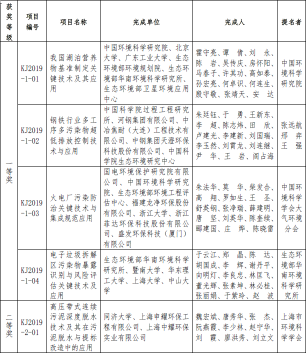 2019年度环境保护科学技术奖拟授奖项目名单公示